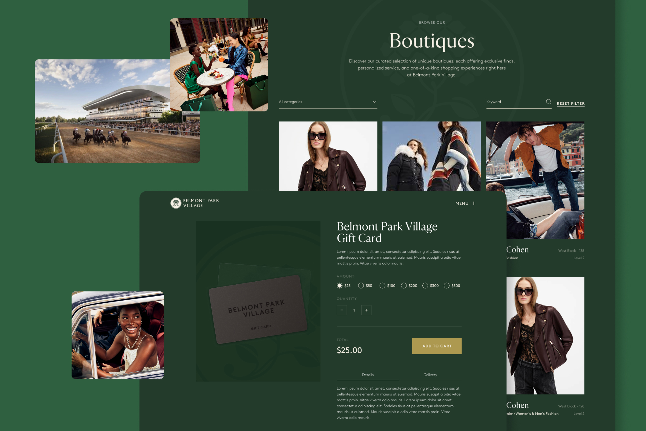 As the first North American property in The Bicester Collection, Belmont Park Village needed a digital presence that matched the brand’s global reputation. Through refined visual design, premium typography, and elegant interface moments, the site reinforces the Village’s luxury positioning while remaining fully responsive and accessible.
